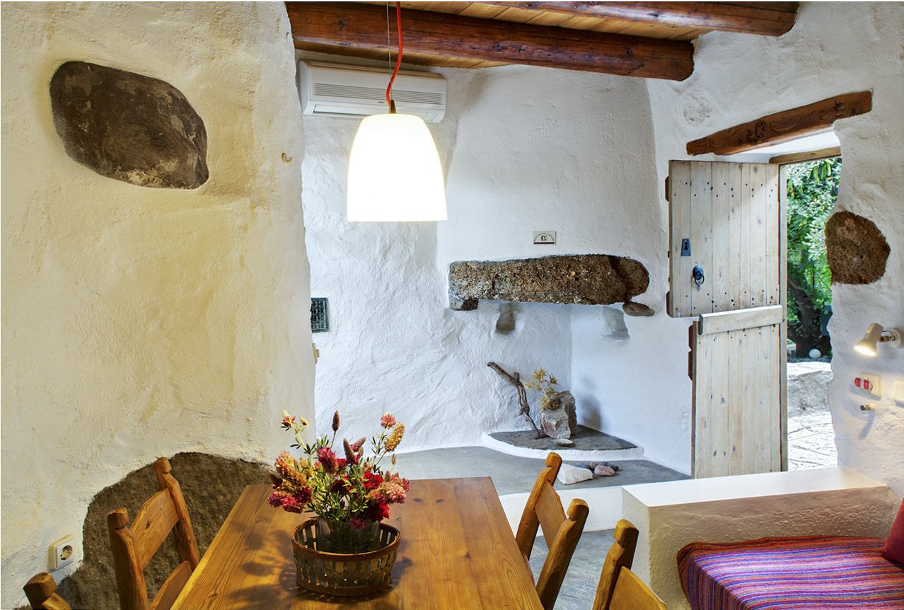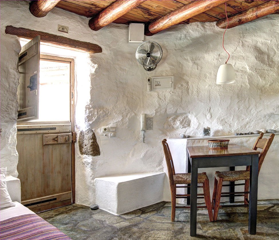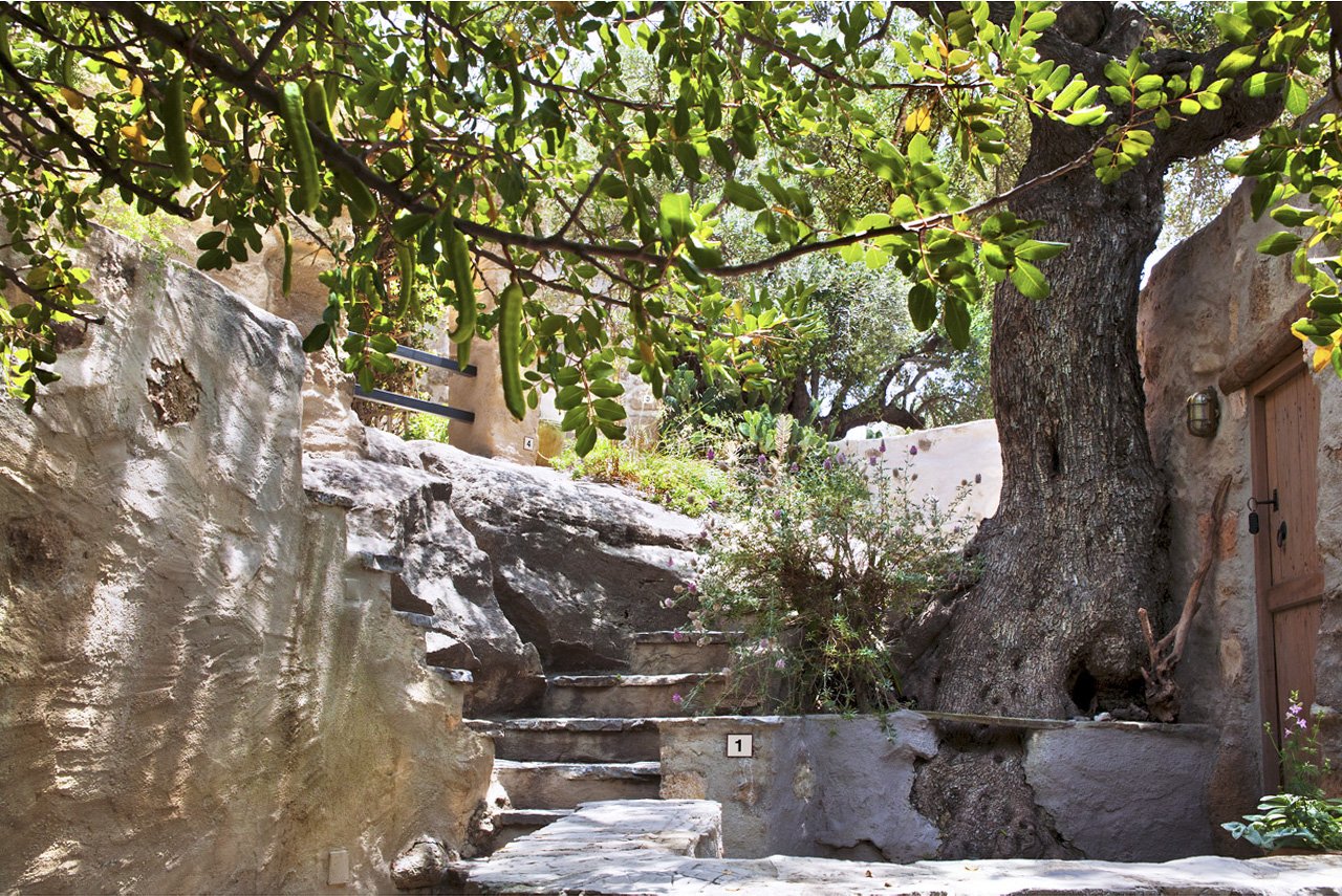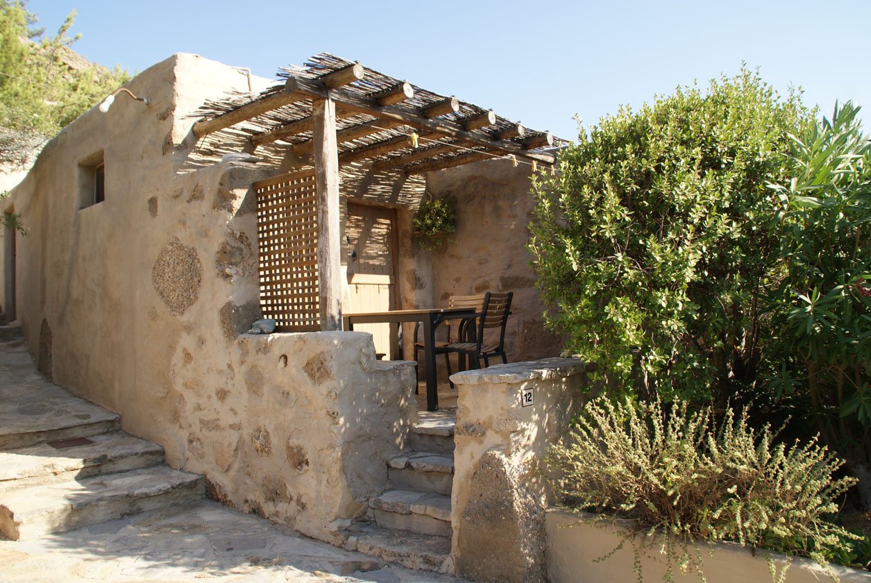 In de jaren 80 kocht Vangelis Mavrakis een aantal oude ruïnes die dienst hadden gedaan als schuilplaats voor de olijfboeren. Velen verklaarden hem voor gek want welke toerist wil nu in het binnenland verblijven… de kust daar moet je zijn! Maar Vangelis volhardde en bouwde eigenhandig door en creëerde zijn eigen paradijsje. Gelegen aan de voet van de prachtige Pefki kloof en te midden van de oude olijfgaarden.