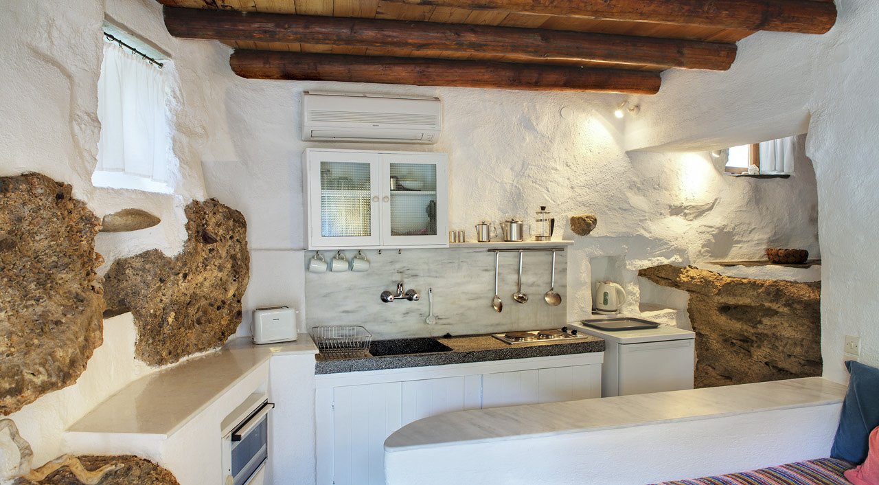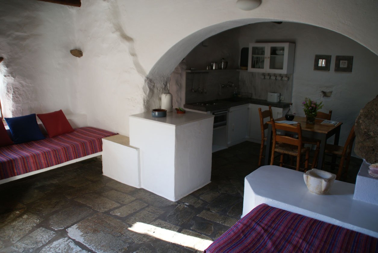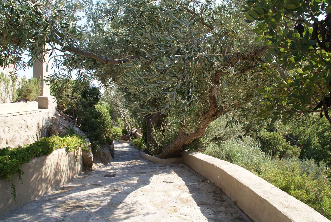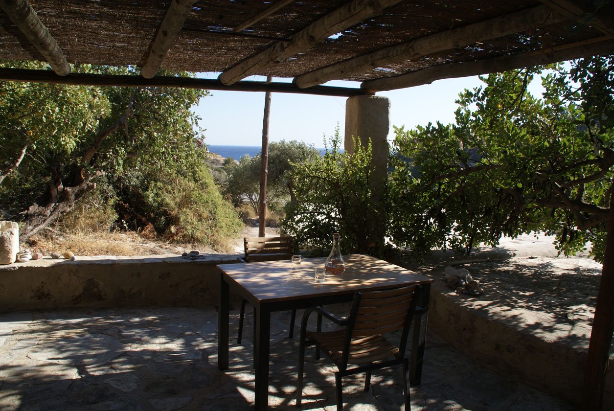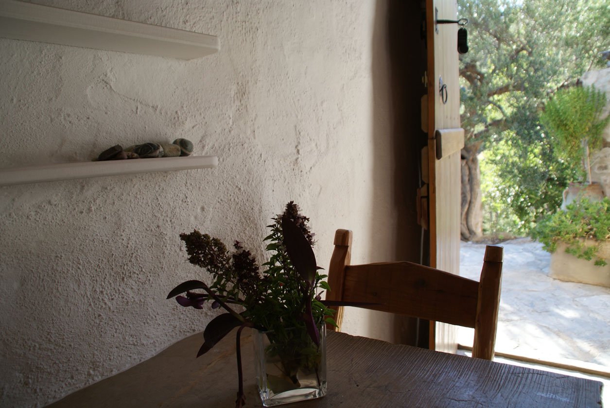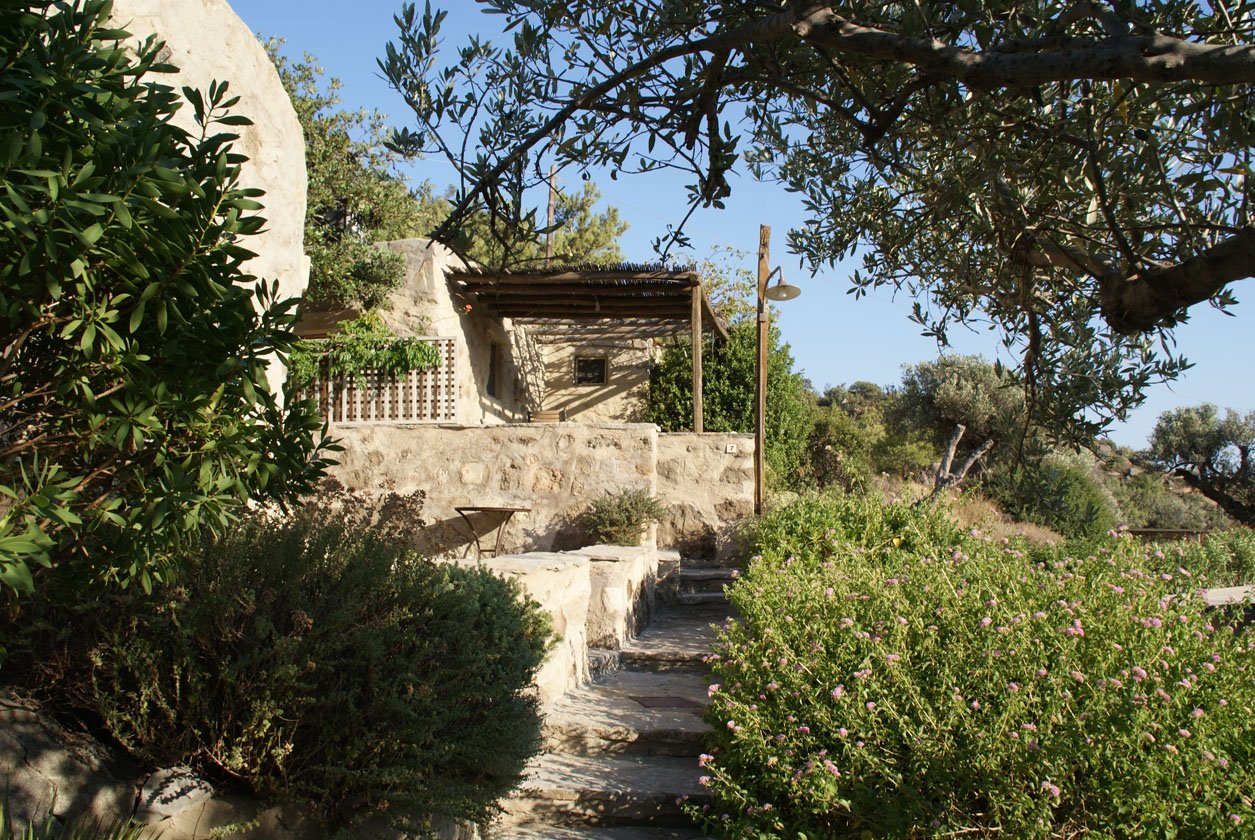 Hij bewees hiermee het tegendeel aan al zijn vrienden want als je nu langs de zuid-oost kust naar deze Hideaway rijdt, krijg je gemengde gevoelens: de kustdorpen hebben zeker een charmant sfeertje, alsof de 70er jaren aan Griekenland nooit voorbij zijn gegaan, maar je ziet ook veel onafgebouwde hotels en huizen welke enorm detoneren in het mooie landschap. Maar laat je hier niet door afschrikken! Via een smal weggetje slinger je vervolgens naar de accommodatie, 5 minuten van de kust van Makris Gialos en vind je een totaal andere wereld.