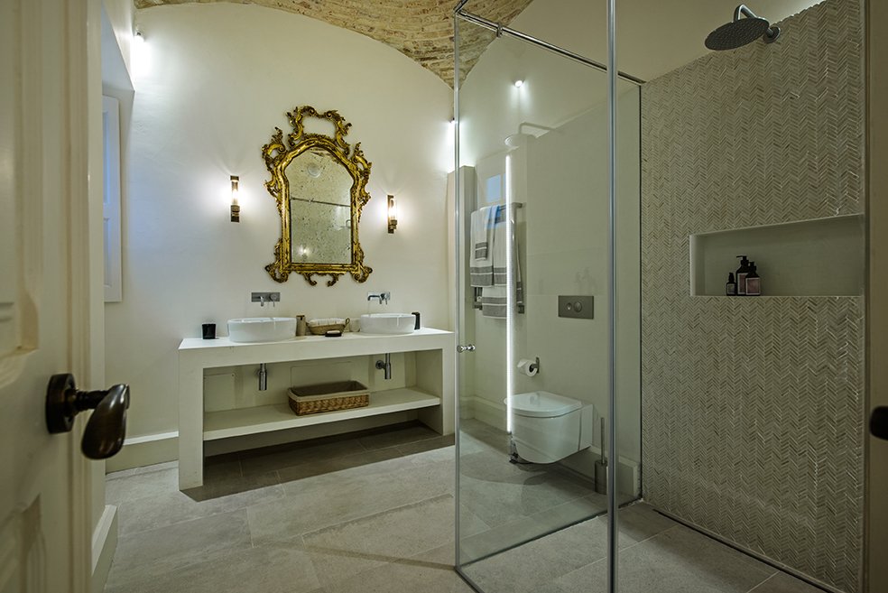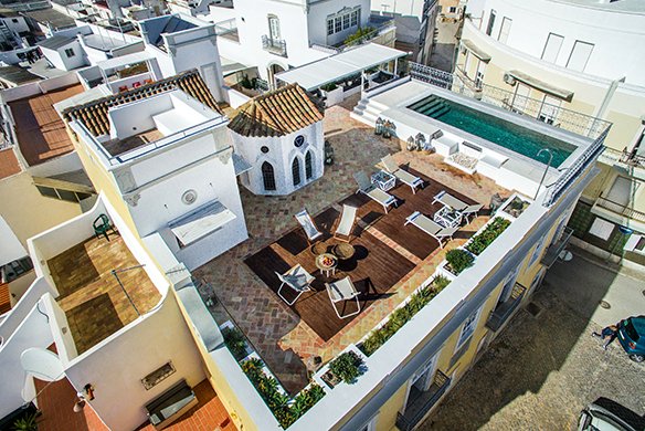 Ruim 2 jaar duurde de verbouwing en werd het bouwval omgeturnd in een prachtig statig herenhuis met 12 slaapkamers met eigen badkamer, een grote living met haard, een ruime half open keuken welke grenst aan het terras, een meditatieruimte, een verborgen ‘mancave’, massageruimtes en als kers op de taart een dakterras met 360 graden view over de daken Olhão met een verwarmd zwembad en een poolbar. De beschermengelen van het huis waren Tara en Jonathan goed gezind en brachten geen ongeluk, in tegendeel, deze Casa is een pronkstuk en het warme geel van de gevel straalt een welkom licht over de smalle straten van Olhão.