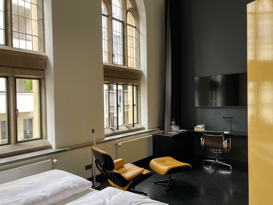 Okay, je hebt speciaal en bijzonder speciaal… in deze laatste categorie valt deze Hideaway in hartje Keulen. Ik heb het vaak over dat een hotel een ziel moet hebben… hiermee onderscheidt het zich van de massa, nu dat kan je zeker stellen bij deze Hideaway. In dit geval de ziel van Michael Kaune welke perfect matcht met het prachtige neogotische gebouw, het oude stadsarchief.  Michael zocht een plek waar hij zijn liefde voor design, kunst en schoonheid kon samenbrengen. Geen museum maar juist laagdrempelig en alledaags, zodat liefhebbers kunnen mee genieten van zijn prachtige verzameling modern design.
