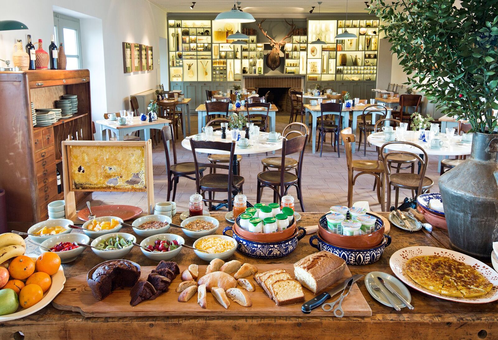 Tijd om afscheid te nemen van de prachtige kustlijn van de Alentejo en door te reizen naar het binnenland. Hier vind je rust en ruimte, kleine weggetjes slingeren door een landschap gevuld met kurkeiken, olijfbomen en wijngaarden die afgewisseld worden met lieflijke dorpjes en interessante steden. Ik maak een stop in Évora, met een prachtig historisch centrum dat door UNESCO op de werelderfgoedlijst gezet is. Een perfecte stad om een dag te verkennen: Romeinse overblijfselen, een prachtige kathedraal, ook winkeltjes en een keur aan restaurantjes… Ik vervolg mijn weg richting Monsaraz, dit is de omgeving van de textiel en de keramiek. Het is even zoeken naar de derde Hideaway van deze reis: een exceptioneel project waarbij een eeuwenoude boerderij is omgetoverd tot luxe hotel. Je wordt als gast namelijk in eerste instantie een beetje op het verkeerde been gezet. Deze Hideaway is nog steeds gedeeltelijk een boerenbedrijf en de buitenkant is zoveel mogelijk authentiek gehouden… dus geen gepolijste muren en gelikte gebouwen maar een eeuwenoud landgoed waar vroeger de arbeiders hun huisjes hadden omringd met keien paden en velden, een compleet dorp (monte zoals ze in het Portugees zeggen).