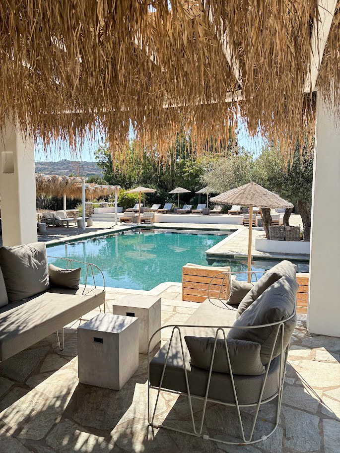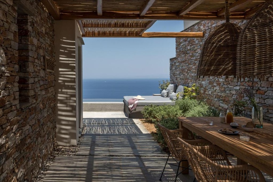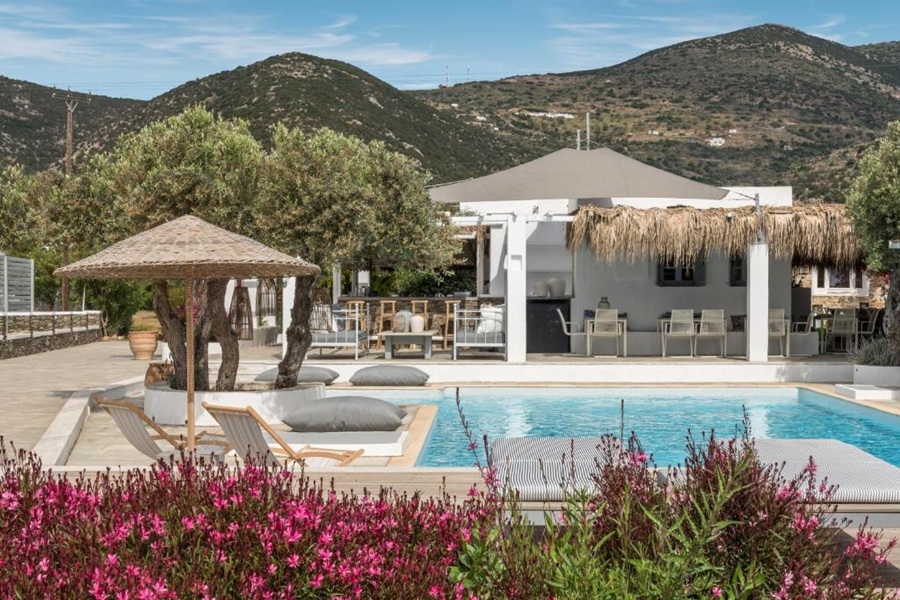 Ditmaal verras ik je met 2 Hideaways van dezelfde eigenaar maar op verschillende plekken op het eiland en met totaal verschillende sfeer. Een hotel is meer gericht op gezinnen en is gelegen bij het levendige Platis Gialos. Fijne kamers, een goed ontbijt, een gezellige bar en een zwembad zijn ingrediënten voor een onbezonnen vakantie. Je steekt de straat over en zit op het strand (niet het mooiste strand op het eiland naar mijn mening) waar je voor lunch en diner een keur aan leuke restaurantjes vindt waar je eerste rang zeezicht zit.